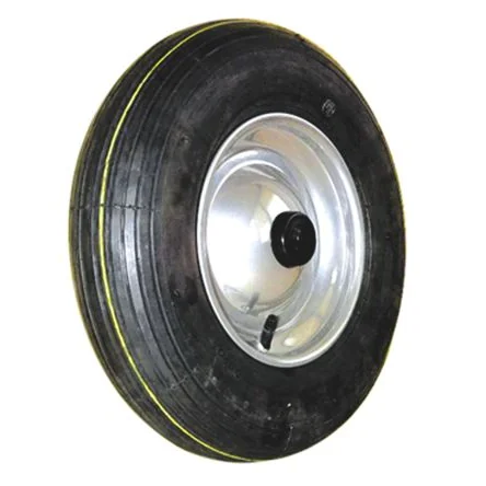 Experience smooth handling on uneven surfaces with this flexible pneumatic tyre wheel.