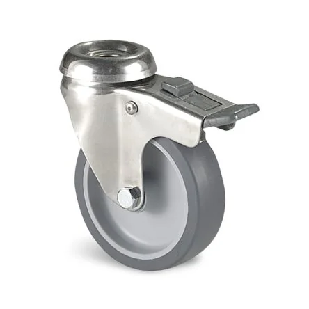 The Guitel Hervieu swivel and brake castor with pressed stainless steel wheel has 75 mm diameter. This castor swivel on two rows of balls and has a central bolt hole fitting. Wheel centre made of Grey Polypropylene.Low starting effort Bonded rubber Corrosion resistant and easy to clean Suited for food industry, hospital or industrial kitchen equipment