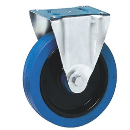 MAXI-ROLL castors (blue RESILEX P wheel). Pressed steel castors with blue RESILEX P wheel. Wheels featuring a blue super elastic rubber tyre fitted on a black polyamide 6 body. Designed for flexible, simple handling on all types of industrial surfaces, even those in poor condition. Do not mark floors. High abrasion resistance.