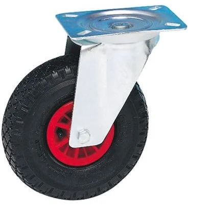 ROLL A castors (PNEUMATIC tyres). White zinc-plated pressed steel castors fitted with grey lined tyres. Roller bearing hub.