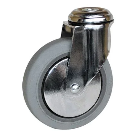 Silent thermoplastic rubber castors. These silent rubber castors are easy to move and aesthetically pleasing. Features and Benefits. • Silent and easy to push and pull which reduces the risk of injury and disorders to the individual using the product • Attractively designed • Easily accessible steel brake pedal • Non-marking thermoplastic rubber tyre fitted