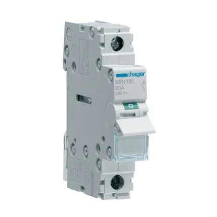 Hager 1P Pole Isolator Switch - 80A Maximum Current, IP20 - SBN180