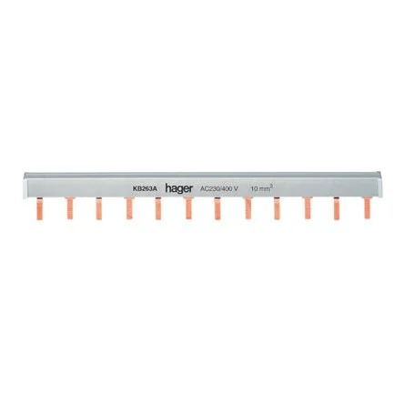 Hager Insulated Busbars. Features and Benefits. 144-4828 144-4828 , KB163N, 1P, 63 A, 10 mm², blue, 13 modules 144-4829 144-4829 , KB163P, 1P, 63 A, 10 mm², brown, 13 modules 144-4830 144-4830 , KB263A, 2P, 63 A, 10 mm², grey, 12 modules 144-4831 144-4831 , KB363A, 3P, 63 A, 10 mm², grey, 12 modules 144-4832 144-4832 , KB463A, 3P+N, 63 A, 10 mm², grey, 12 modules 144-4833 144-4833 , KBN663A, 3P+N, 63 A, grey, 12 modules 144-4834 144-4834 , KBN863A, 3P+N, 63 A, grey, 12 modules 144-4835 144-4835 , KBS763G, 2P, 63 A, grey, for QC 18 modules
