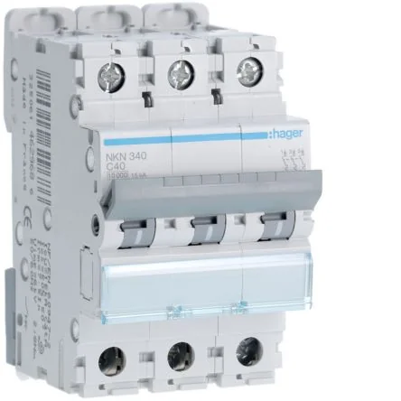 Hager Hager NKN Circuit Breaker, 3P, 40A Curve C, 400V AC, 15 kA Breaking Capacity - NKN340