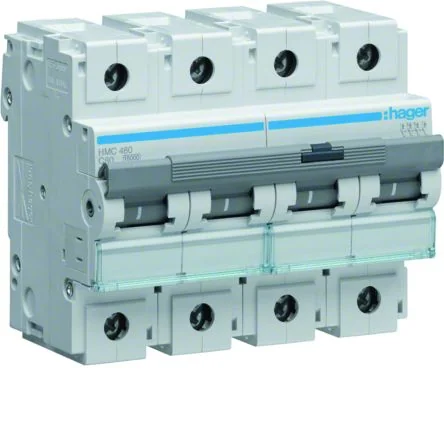 The Hager HMC MCB offers reliable circuit protection with 4 poles and an 80A current rating.