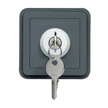 Stylish Hager Cubyko key switch with a 10A changeover function, perfect for reliable control.