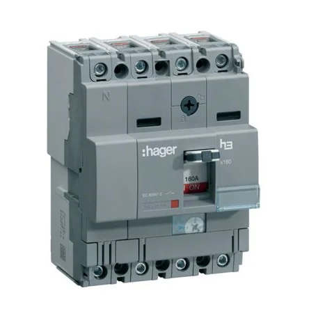Ensure reliable circuit protection with the Hager MCCB 4P 160A, featuring a robust thermal-magnetic tripping mechanism.