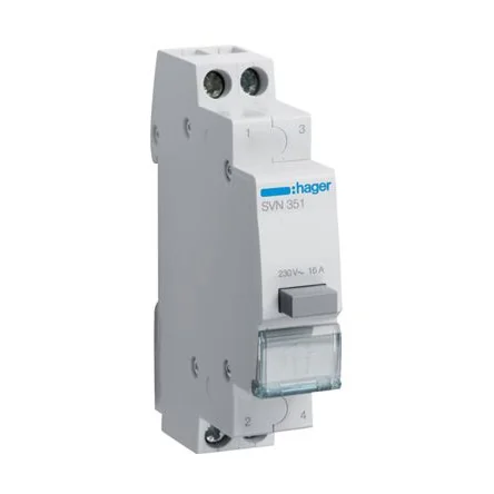 Hager SVN Pushbuttons. Hager SVN series DIN rail mount push button controls. The SVN push buttons provide a visual status with a bright LED. Suitbale for use in industrial automation and process control applications. Features and Benefits. Cage clamp connection. IP20 rated. Various colour options available