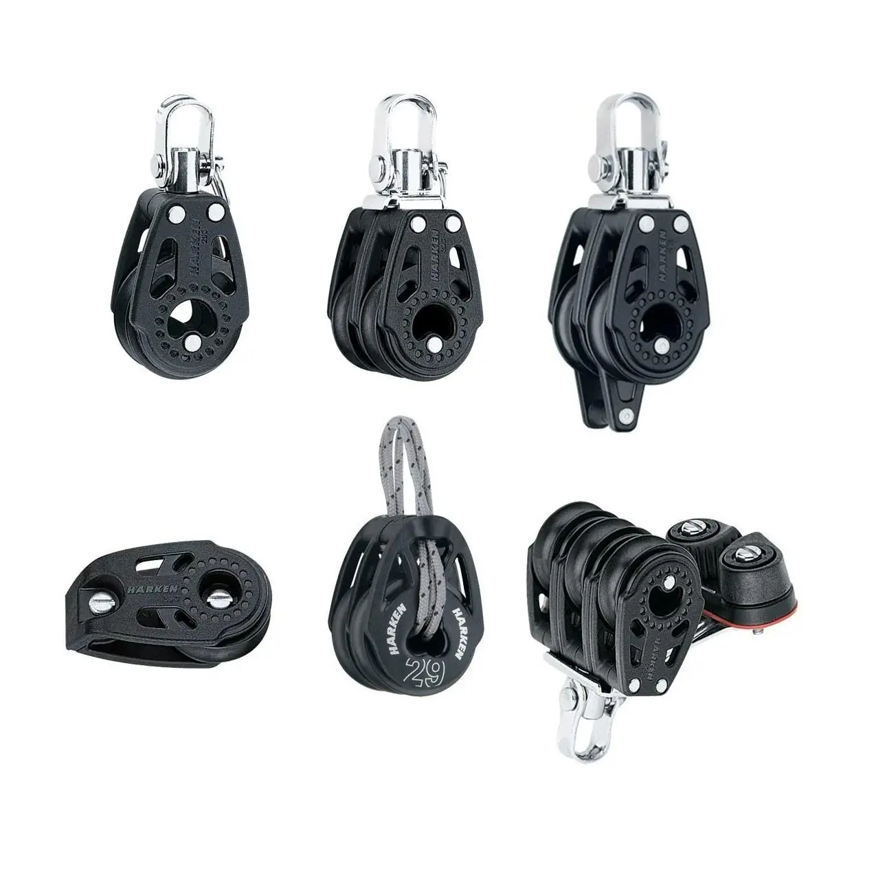 The Harken 29mm Carbo Air® Double Block is a lightweight, high-strength pulley designed for demanding sailors seeking optimal performance and durability. Constructed from tough, fiber-reinforced composite materials, this block offers a high strength-to-weight ratio, making it 30% lighter and 60% stronger than equivalent conventional blocks.