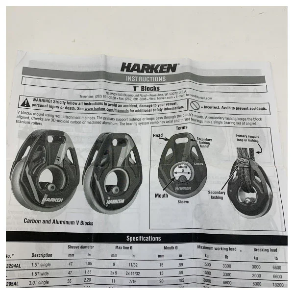 Are you looking for an extremely strong and lightweight sail block for the heaviest loads? The Harken Aluminium V-Loop Block 5T (3296AL) is the ideal solution for high-performance sailing applications where reliability and weight saving are crucial.