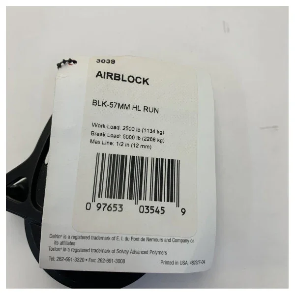 The Harken Black Magic 57 mm Air Runner Block - 3039 is designed for the demanding sailor who makes no compromises in terms of performance and reliability. This block, with a diameter of 57 mm for the sheave, is an essential component for high-performance line systems on yachts and sports boats.