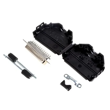 MIL-C-24308; DIN 41652; CECC 75301-802. Connector Kit (Cable Mounting). A range of D-Sub Plug or Socket solder termination backshell Connector Kits available in 9, 15, 25 and 37 ways. Kits include: five solder bucket D sub connectors, five top entry plastic backshells with cable clamp and five pairs of jackscrews with 4-40 UNC thread, for the fabrication of five connector assemblies. 9 way stock number ; 306-2720 306-2720 Plug 9 way stock number ; 306-2714 306-2714 Socket 15 way stock number ; 510-9972 510-9972 Plug 15 way stock number ; 510-9988 510-9988 Socket 25 way stock number ; 306-2742 306-2742 Plug 25 way stock number ; 306-2736 306-2736 Socket 37 way stock number ; 510-9994 510-9994 Plug 37 way stock number ; 511-0001 511-0001 Socket