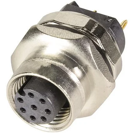 Reliable M12 circular connector with 8 contacts, designed for robust PCB mounting in harsh environments.