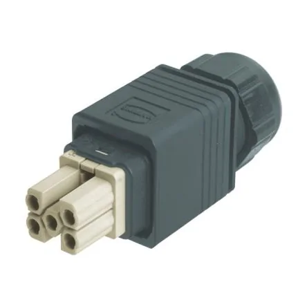 Reliable 5 way female connectors from Harting, rated for 16A and 690V.