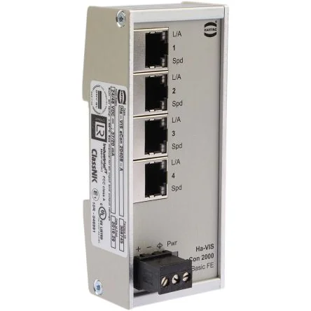 HARTING Unmanaged Ethernet SwitchThe HARTING unmanaged Ethernet switch has 4, RJ45 port and DIN rail mount industrial hub. It has a supply voltage rating between 24VDC to 48VDC. The Ha-VIS eCon 2000 series of unmanaged Ethernet switch offers a plug & play solution. It is the extremely flat construction and frontal port mounting of the switches, allowing for installation into space-restricted or hard-to-reach applications. The PoE and fibre-optic ports are also available.Features and Benefits2.99 MTBF (in million hours) Non-blocking fast Ethernet switching architecture Auto-negotiation Auto-polarity and auto-MDI(X) provide the user with a plug and play solution Reverse polarity and surge protection Transfer length of 100m via twisted pair Cat. 5 with a 10/100MB/second transfer rate Reduced energy consumption thanks to energy-efficient Ethernet Anodised aluminium housing Operating temperature ranges between 0°C and 55°CApplicationsIndustrial network infrastructure Machinery and robotics Automation Transportation Wind and solar energy ShipbuildingCertificationsCE certified FCC CFR 47 part 15 DNV GL ABS cUL US 508 listed NK ABB IIT IEC 60068-2-6 vibration IEC 60068-2-6 resonance search IEC 60068-2-27 shock test IEEE 802.3 IP30 rated