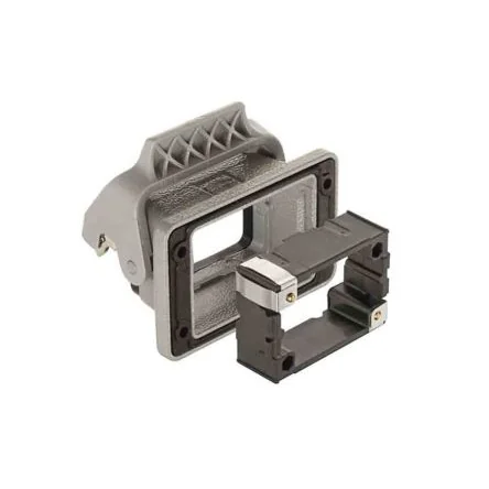 Durable Harting Han rear-fit panel housing with IP66 protection for reliable industrial use.