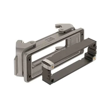 The Harting Han rear-fit panel housing with frame is a rear mounting type and has a size 6B. It has a Low construction and Single locking lever.Polycarbonate and stainless steel locking material Seal material is NBR IP66 protection (IEC 60529)