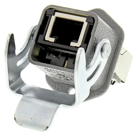 HARTING RJ45 ConnectorThe HARTING Han 3A series CAT5 female to female RJ45 connector is a through-hole mount shielded plug. This metal body RJ45 data connector and panel receptacle utilise proven housing that provides a proven and reliable secure connection. It has an optional coding pin set that enables dediCATed connectivity between the connector and panel receptacle.Features and BenefitsCable sheath diameter ranges between 6.5mm and 6.9mm Mating cycles are greater than or equal to 500 Temperature ranges between -40°C and 70°CCertifiCATionsANSI/ESD S20.20:2014 BS EN 61340-5-1:2007 IP67 rated