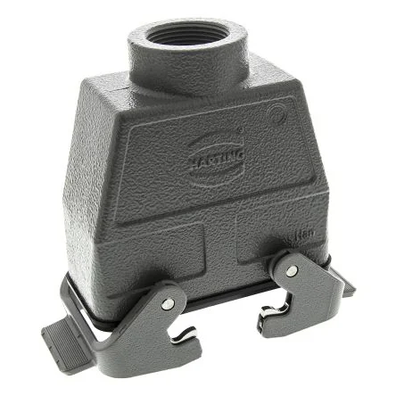 Durable HARTING Han B connector hood designed for secure electrical connections in demanding environments.