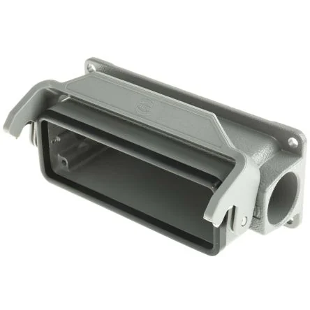 These connectors should not be mated or unmated under electrical load. Connectors of the same or different types arranged in a line should be polarised to prevent the possibility of wrong connection. UL, CSA, SEV. Hoods and Housings 24B. Brought to you by Harting, a comprehensive offering of hoods and housings from the Han 24B range. Compatible with a wide range of inserts, modules, frames including appropriate inserts from the Han D, DD, E, ES, EE, Com, E and Modular series. A strong metal body ensures optimum protecting for its relevant connectors. All models are highly reliable and excellent quality. Features ; Benefits. Metal bodied. Metric and Imperial cable glands are available separately, see stock no. ; 405-8845 405-8845 and ; 212-7668 212-7668. Option of 1 or 2 locking levers on the hoods, and the bulkhead or surface mounting housings