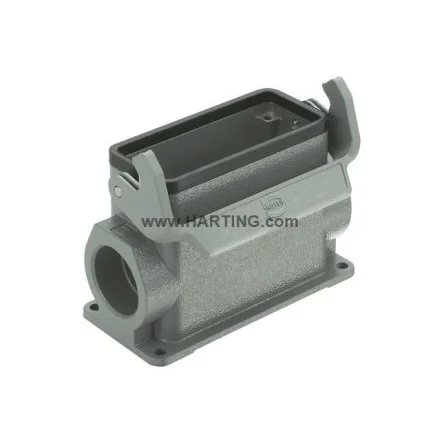 HARTING HoodThe HARTING Han B series surface mount aluminium die-cast hood has a thread size of M32x2. This hood uses a screw termination and has a side entry body orientation.Features and Benefits• Limiting temperature ranges between -40°C and 125°CApplications• Automobile • Mechanical engineeringCertifications• CSA-C22.2 • IP65 rated • UL 1977 ECBT2. E235076