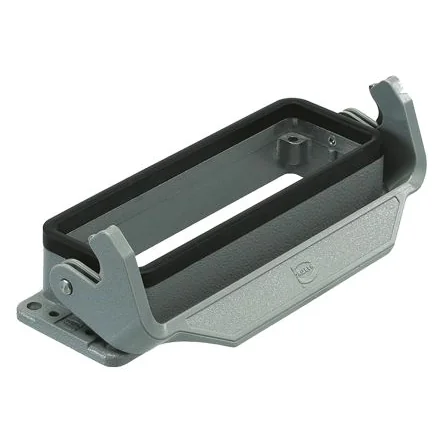 UL. For inserts refer to ; 874-3493 874-3493 , ; 874-3512 874-3512 , ; 874-3588 874-3588 and associated ranges, for frames see ; 874-3430 874-3430 and range. Han B HMC Housings and Hoods. From Harting, a comprehensive offering of Han B HMC hoods and housings, featuring a wide variety of styles including side entry, top entry and cable to cable. From sizes 10B to 24B, these hoods and housing have a single lever locking style and are suitable for use with inserts and frames from the Han EMC range. These hood and housings are designed for over 10 000 locking operations. Features and Benefits. Aluminium diecast body Powder coated grey Han-Easy Lock HMC lever type IP65 rating when coupled Limiting temperature -40 to +125° C. Applications. The Harting Han HMC range has been designed to cater for industries including medical, test engineering solutions and the industrial applications market, with their high demand for connector mating and disconnects, such as modular production areas, automatic tooling, test and inspection units.