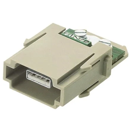 RU. DIN EN 60664-1, DIN EN 61984. Han USB Modules. Han USB module, USB 3.0 specification with 1A rated current at 50V, featuring screw terminals for ease of assembly, suitable for many applications and capable of over 500 mating cycles.