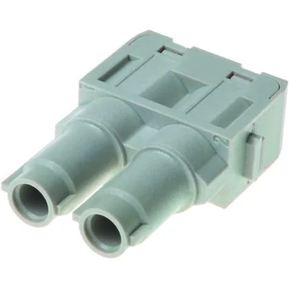 Han Axial Screw Module 70A. Axial-screw termination 2-pole 70A contacts for power circuits High 1000 Vac rating Coding pin allows polarisation of modules Male and female contacts are finger safe Mating cycles = 500