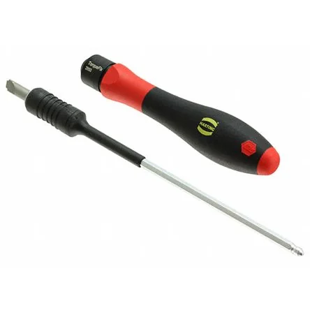 Torque Driver Set. From Harting, this 1/4 in size torque driver set has a slotted end, and is for use with guide pins and bushings. The torque driver has an ergonomically designed handle for a comfortable and secure grip.