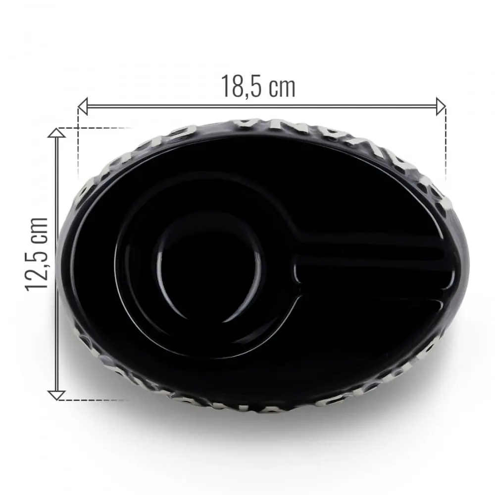 a perfect ashtray for cigar lovers.. all ceramic and black in color..