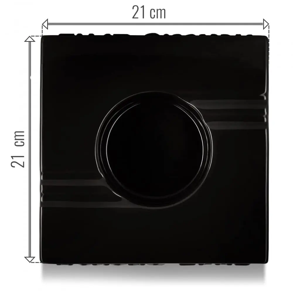 intense black this double square havana club ashtray will allow you to rest several cigars at the same time. you can also change the cigar rest during its tasting because this ashtray offers you two different sizes of notches on each side. it will also look great on your coffee table or the piece of furniture you have chosen!
