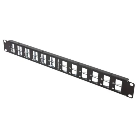 Efficiently manage your network with this 24 port RJ45 patch panel, designed for both shielded and unshielded connections.
