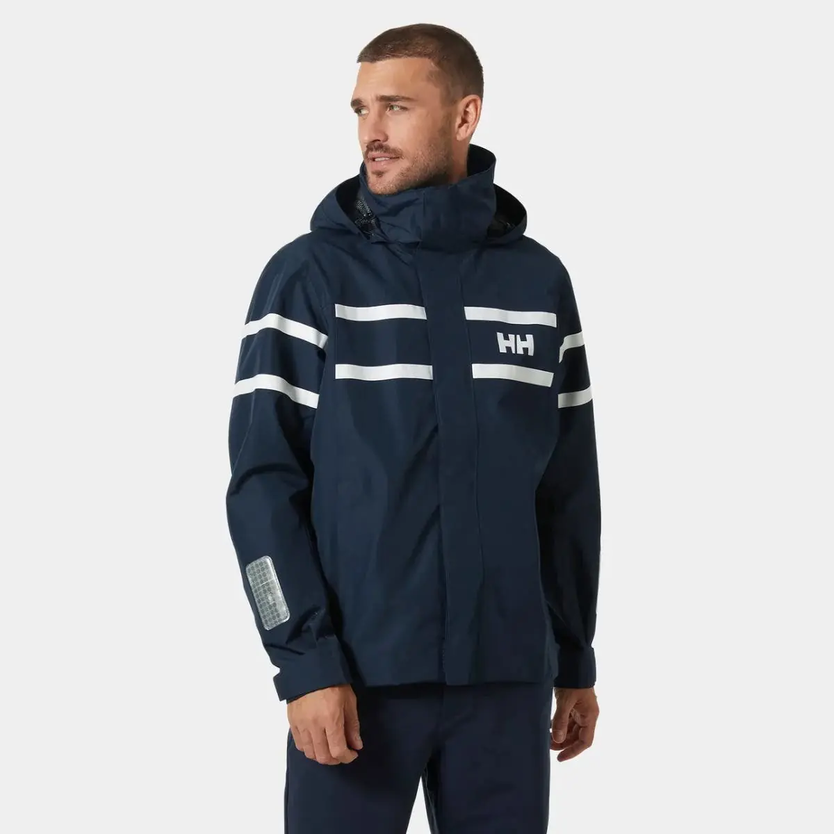 The Helly Hansen Men's Salt Inshore Sailing Jacket is engineered for inshore sailing, offering exceptional protection against the elements. Constructed with HELLY TECH® Performance technology, this jacket is both waterproof and breathable, ensuring comfort and dryness during unpredictable weather conditions. The design features a high collar with a double storm flap, adjustable cuffs, and a packable hood that stows into the collar, providing customizable protection. Reflective SOLAS elements enhance visibility, while a D-ring for a kill cord and a hangar loop add to its functionality. The jacket includes two hand pockets with brushed lining for warmth, an inner chest pocket with a zipper for secure storage, and a mesh lining for added comfort. Notably, the jacket is made with Ocean Bound recycled materials, sourced within 50 km of coastlines or major waterways in regions at risk of plastic pollution.