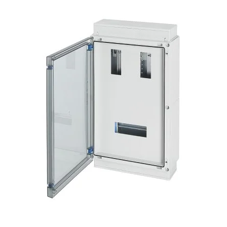 VTPN Distribution board system Incoming for isolator/MCB/RCCB or RCBOIncoming up to 125 a 4 ways with mcb max. 63 a With transparent door Modules: 8+12 Incoming via isolator/mcb/rccb or rcbo Pe and n terminals Per pe/n 1 x 6-35 mm², 8 x 1,5-16 mm², cu Flanges with integrated earthing plate Installation dimensions: width 330 mm, height 92 mm Door fastener with tool operation Material: pc (polycarbonate) Colour: grey, ral 7035