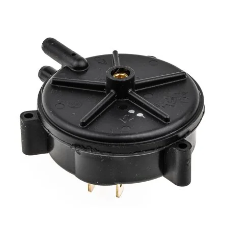 Ultra Low Pressure, Vacuum or Differential Pressure Switch. Products are screw adjustable but are factory fitted with specific pressure rated springs which are not interchangeable. As the contact pressure is dependent on the air pressure, the switch rating will be reduced when used at the minimum operating pressures. The connection terminals on this version exit vertically downwards from the lowest face in relation to the image shown above. Glass filled polyester housing Ideal for airflow and fan monitoring Mounting bracket and screws included Should be mounted with the diaphragm vertical
