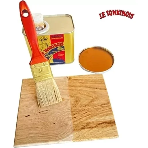 | Application | Surface: Untreated wood, wood-based materials, also on cork to a limited extent. Carefully sand the rough wooden surface. The wood surface must be free of dust and grease, clean, dry and frost-free (max. 15 % wood moisture). It is recommended to prime untreated wood with Le Tonkinois Huiles Bio Impression. The priming oil penetrates deeper and provides good adhesion for the Vernis. Coatings: should always be applied thinly with a roller, brush or paintbrush. For best results, apply only one coating daily. For spraying, dilute with Le Tonkinois Thinner up to a maximum of 5%-10%. For basic sanding, 180 grit is optimal. For intermediate sanding, please use water sandpaper and 240 or 280 grit. Sanding is necessary for purposes of making the straightened wood fibres smooth and avoiding separating layers. Do not apply at temperatures below 12 °C. Drying time: 6 - 8 hours at 20°C and medium humidity; if possible, wait 24 hours before recoating. Low temperatures, high humidity and low air circulation may delay drying and aid odour formation. Ensure good aeration when applying the varnish. Coat the surfaces with great caution at first. Surfaces can be walked on after 3 days with 2-3 coatings or after 7 days if full coating is applied. |