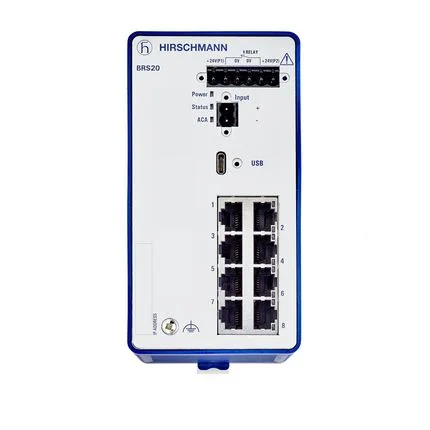 Enhance your network with the Hirschmann Managed 8 Port Ethernet Switch, designed for optimal performance and reliability.