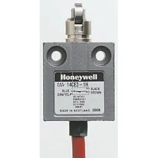 IP Rating: All models within the 14CE series meet IP65, IP66, IP67, IP68. This ensures that they are completely dust tight, offer protection against jets of water and can be immersed in water up to 3 m. NEMA Rating: Every 14CE limit switch also meets NEMA, 2, 3, 3R, 4, 6, 6P and 13 requirements. Type 2 : Allows for indoor use and provides a degree of protection against access to hazardous parts. The enclosures provide a degree of protection against foreign objects (such as falling dirt) and the ingress of water (light dripping or splashing). Type 3: Allows for indoor or outdoor use and provides a degree of protection against access to hazardous parts. The enclosures provide some protection from foreign objects (such as windblown dust) and the ingress of water (such as rain or snow). Enclosures that meet NEMA 3 offer protection against ice forming externally. Type 3R: Allows for indoor or outdoor use and provides a degree of protection against access to hazardous parts. The enclosures primarily provide ingress protection against water (such as rain, snow or sleet). Enclosures that meet NEMA 3 offer protection against ice forming externally. Type 4: Allows for indoor or outdoor use and provides a degree of protection against access to hazardous parts. The enclosures provide some protection from foreign objects (such as falling dirt and windblown dust) and the ingress of water (such as rain, snow or sleet alongside splashing water and hose directed water). Enclosures that meet NEMA 3 offer protection against ice forming externally. Type 6: Allows for indoor or outdoor use and provides a degree of protection against access to hazardous parts. The enclosures provide some protection from foreign objects (such as falling dirt and windblown dust) and the ingress of water (such as rain, snow or sleet alongside splashing water and hose directed water). Enclosures that meet NEMA 4 offer protection against ice forming externally. Type 6P: Allows for indoor or outdoor use and provides a degree of protection against access to hazardous parts. The enclosures provide some protection from solid objects (such as falling dirt and windblown dust) and the ingress of water (such as hose directed water). Enclosures that meet the NEMA 6P requirement also offer protection against water when being submerged at a limited depth. Type 13: Enclosures that meet Type 13 are suited to harsh environments. Enclosures can be used indoors and provide protection against access to hazardous parts. They offer protection against solid objects such as falling dirt, windblown dirt, fibres and lint. They provide a level of protection from dripping and splashing water and other liquids such as the splashing, seepage and spraying of oil and non-corrosive coolants. 14CE limit switches are not emergency stop devices or safety devices. They must not be used in devices, applications and environments where injury can incur as a result of product failure. CE. 14CE Series Miniature Limit Switches. The 14CE series of limit switches from Honeywell form part of their miniature limit switches range. This series is compact, precise and highly versatile. They have been designed for use in a wide range of environments. A choice of actuator ensures that you will be able to find the right limit switch to meet your application. Features:. 14CE limit switches have gang mounting capability. A range of different cable lengths are available. These limit switches feature a wide operating temperature range of -40 °C to +75 °C. Excellent mechanical life up to 10 million operations for standard plungers and actuators. Wobble stick or cat whisker actuators have a life span of 5 million operations. Benefits:. 14CE limit switches are ideal for applications with limited space. They have a compact design and feature 25 mm mounting centres. The mounting holes for screwing the limit switch into place are counter-bored. This means that the screw heads fit within the housing of the unit, and no additional real estate is required when mounting the switch. Installation of 14CE limit switches is quick and easy. Each unit only requires two M5 screws for mounting. Pre-leaded cables and M12 connectors also help to minimise installation time. This series offers a great deal of design flexibility. You can choose the most appropriate cable length and whether the cable or connector exits the unit at the side or bottom. These switches are supplied with an M12 four-pin connector or are pre-leaded with Cenelec cable. Utilising the gang mounting capability, you can build your own multiple plunger switch using models with a pin plunger or roller plunger. 14CE limit switches are constructed with diecast zinc housing. Each unit within the 14CE series incorporates a fluorocarbon sealing diaphragm that offers protection and enhances reliability. An epoxy sealant has also been used to encapsulate the cable, connector and switch. The factory sealing and sealant protects the integrity of the limit switch and you can trust this limit switch to perform consistently and accurately within the most rugged environments. They will function as expected in environments where petrol, water based or synthetic fluids are present. Applications:. 14CE limit switches are incredibly versatile and can be used in extreme temperature and harsh environments. Example product applications include: Machine tools: You can use 14CE limit switches to detect tools, or the location of pieces or parts on a CNC tool. Off-road equipment: 14CE models can be used in crane booms (crane jibs) as a cab door switch. Material handling: 14CE limit switches can be utilised in vehicle wash systems and forklift trucks. They are ideal for use within dock locks for trucks and trailers. Textile and print trade machinery: Applications include tensioning, sensing of roll sizes, controlling panels and gates. Access and mobility solutions: Stairway and vehicle wheelchair lifts use 14CE switches, to monitor movement. Robotics: This se