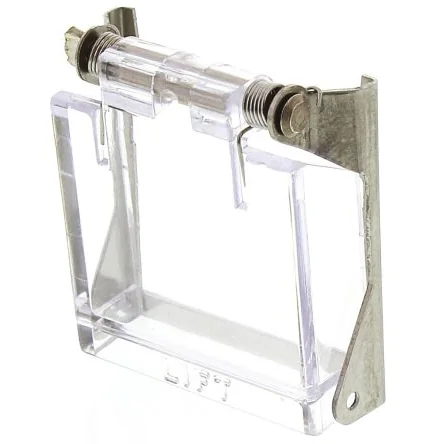 Pushbutton Switches, Modular ; Illuminated, Switch Guards. Clear polycarbonate spring-loaded hinged covers which prevent the accidental operation of a push-button switch and can be wired closed The guard should be assembled to the switches prior to installation in a panel