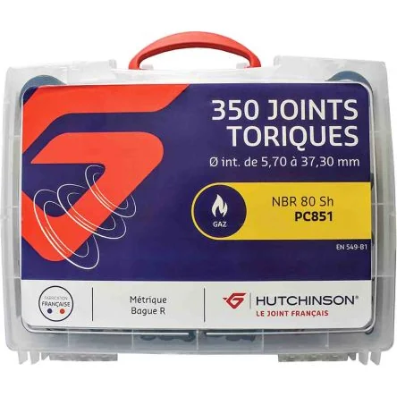 The Hutchinson Le Joint Français O-ring case contains 350 O-rings with inner diameters from 5.70 to 37.30 mm. These NBR80 seals are approved for gas applications.20 different O-Ring sizes