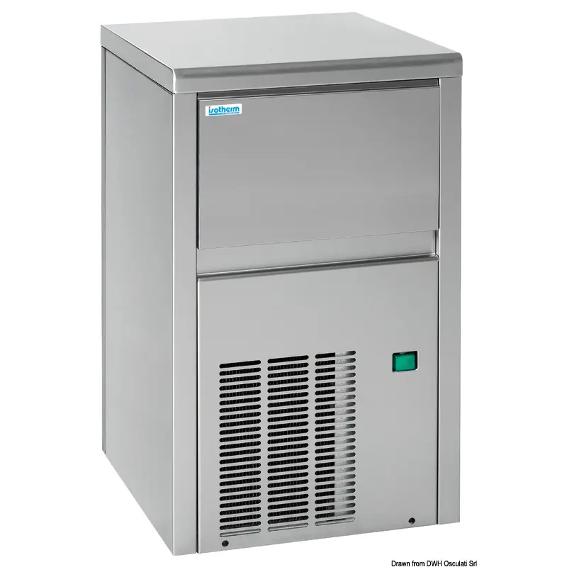 Efficient ice maker producing 18 kg/day of clear ice, ideal for marine environments.