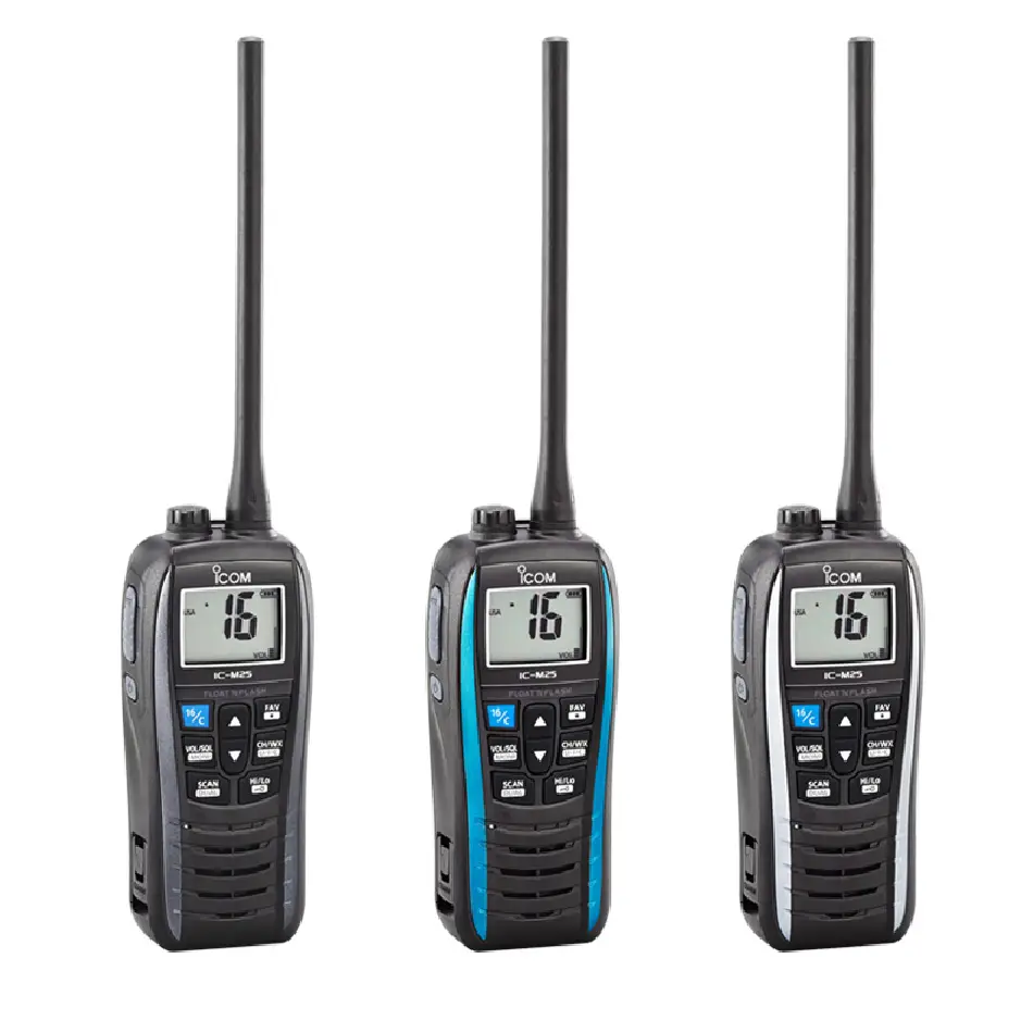The Icom IC-M25 Euro Portable VHF in blue is designed for reliable marine communication.