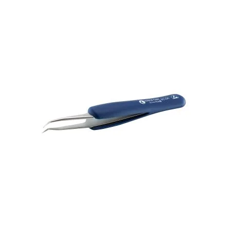 Precision bent tweezers made of stainless steel, ideal for ESD-sensitive applications.