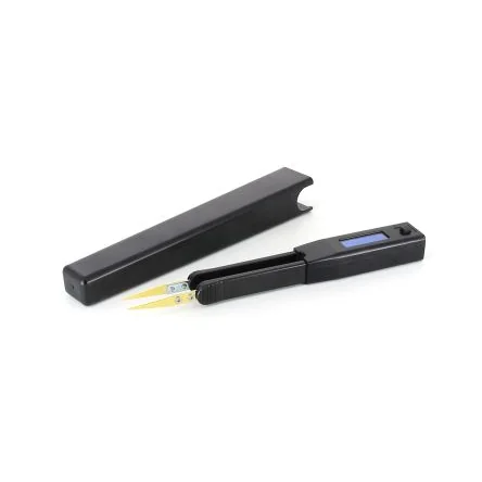 Built-in high-capacity Li-ion rechargeable battery, micro USB charging cord. The LiPo, 180 mAh, 20 hour continuous battery can be charged from any standard USB port or USB wall charger. Ideal-tek Smart Tweezers LED Tester ST-LED. Ideal-tek ST-LED is a specialised solution for testing and verifying SMD and through-hole LEDs. Its design combines a pair of high quality gold-plated tweezers and a digital adaptive LED tester in a compact, lightweight, battery-powered instrument. Features and Benefits. Convenient one-hand operation Instrument of choice for Surface Mount Devices Automatic LED polarity detection and display Forward drop voltage display Adjustable constant test current 1-30 mA Adjustable test duty cycle 10-1000 mSec LED visual brightness verification LED visual colour verification OLED Display Integral Li-ion battery Dimensions 148 x 20 x 15 mm Weight 29 g (1 oz)