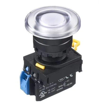 Reliable illuminated push button switch with safety features for easy installation.
