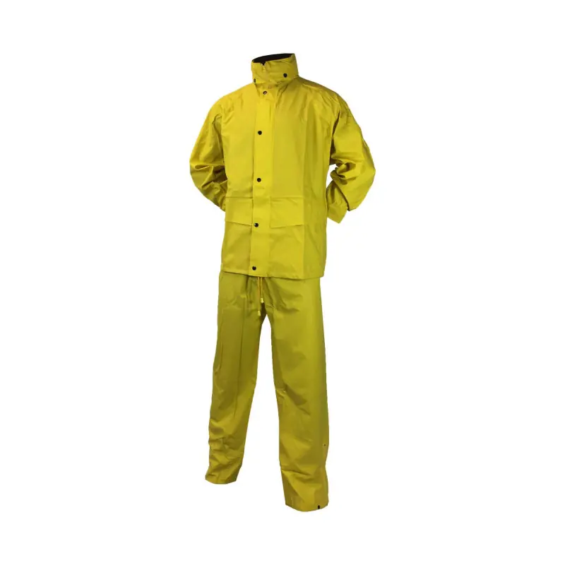 IDEM PRODUCTION diflex rain set - yellow - Size XXL yellow jacket and trousers set designed specifically for rainy weather. Integrated hood in the collar and elastic tightening at the wrists to keep you perfectly dry.
