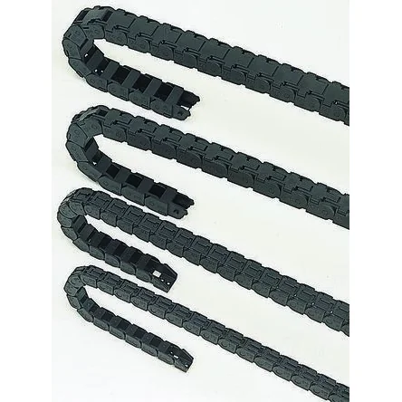 All chains supplied in 1m lengths. The 15 and 17 Series brackets are supplied complete with cable tie fingers. This reduces the potential for creepage during operation. They may be removed if not needed. Dimension A ; B are external dimensions, C ; D are internal. Energy Chain® - Zipper Lid. High quality chains for such applications as guiding cables, fibre optics, and hoses in many industrial fields, such as robotics, pick and place, moving machinery etc. High quality hard wearing material (Igumid G) Easy to shorten and extend lengths Fast installation and maintenance Smooth running Linked lid ensures sections are not lost