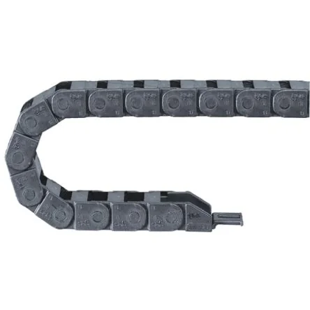 Energy Chain® - E2. Chains for various applications. Large pins for long service life. Smooth interior for long cable life. Dirt-repellant exterior (fully enclosed tubes only). Tapered insertion point for easy assembly. Chain supplied in 1 m lengths