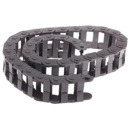 Energy Chain® - Easy Chain®. Fast cable accessibility without opening and closing lids Cables and hoses can be inserted directly into the chain through a split retaining crossbar along the outer radius of the chain Ideal for short-cycle low speed applications Torsional movement permitted Smooth running Fire-resistant to UL94-V2 Chain supplied in 1m lengths. Mounting brackets to be ordered separately