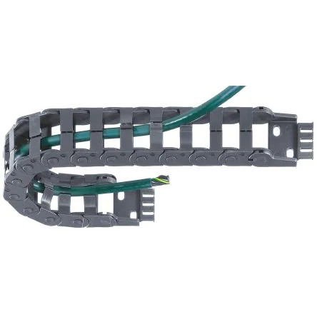 Energy Chain® - Easy Chain®. Fast cable accessibility without opening and closing lids Cables and hoses can be inserted directly into the chain through a split retaining crossbar along the outer radius of the chain Ideal for short-cycle low speed applications Torsional movement permitted Smooth running Fire-resistant to UL94-V2 Chain supplied in 1m lengths. Mounting brackets to be ordered separately